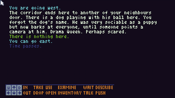 Small adventure which manages to convey a cosy feeling about your life in a small town. GUI is mouse-based (with a few hotkeys), puzzles are decent, I helped seven people. Good job!